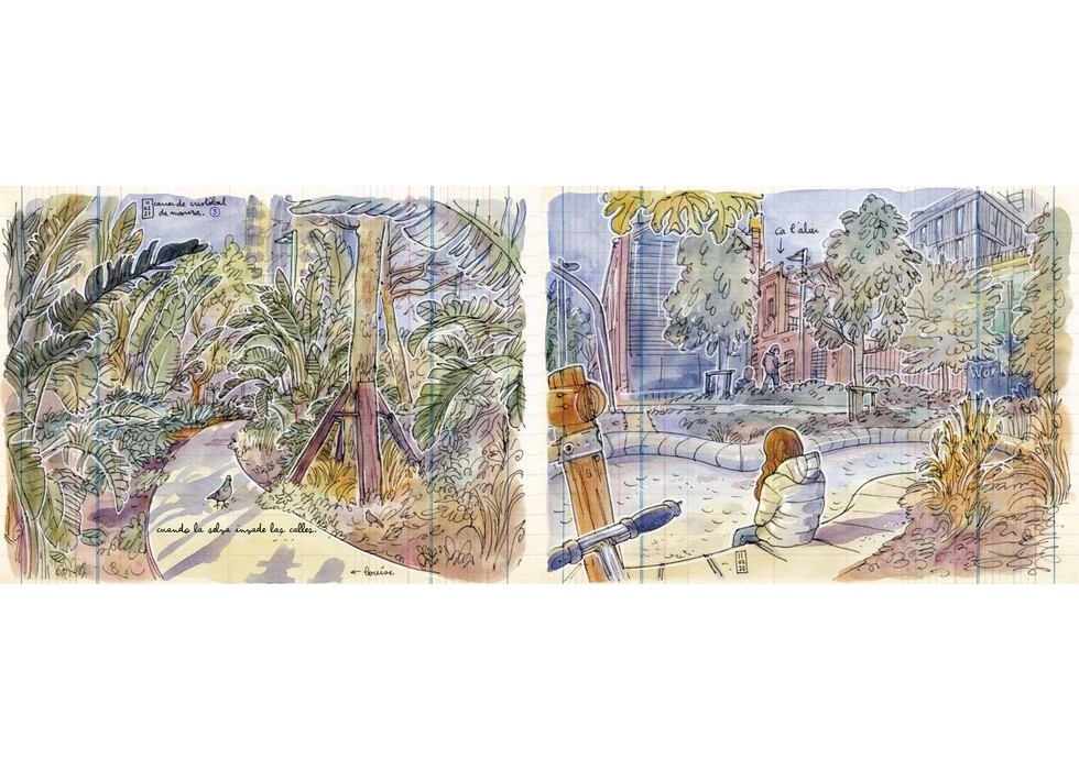 Únicamente con un cuaderno de bocetos, un bolígrafo de dibujo, acuarelas y un taburete plegable, Lapin muestra las imágenes y los fenómenos del día a día en la ciudad de Barcelona. La ...